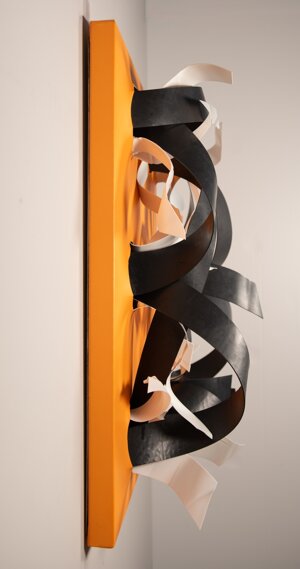 Agosto 2024Installazione di plastiche riciclate su tela. Tecnica mista.