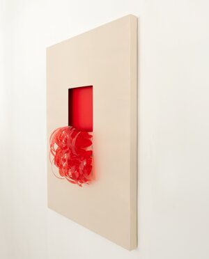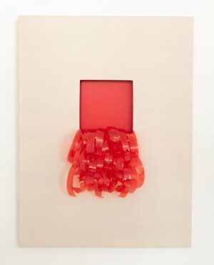 Aprile 2024Installazione di plastica riciclata su tela. Tecnica mista.